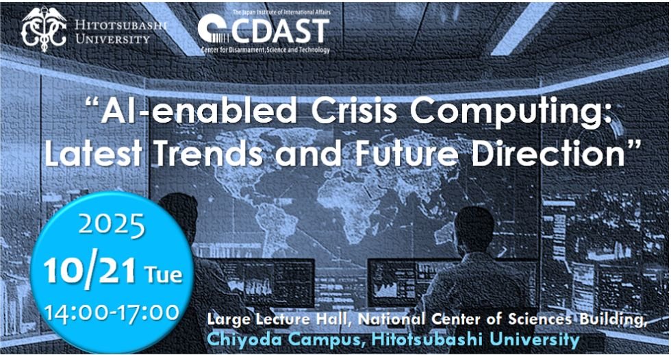 Center for Disarmament, Science and Technology, Japan Institute of International Affairs will co-host a symposium titled "AI-enabled Crisis Computing: Latest Trends and Future Direction" with the Global Online Education Center of Hitotsubashi University. The symposium provides open conversations on AI-enabled crisis management with policymakers, practitioners, and media professionals, identifying challenges and opportunities.