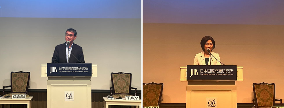 The public forum on September 18, titled "Japan-Singapore Cooperation in a World Remade," opened with remarks from the JSS Co-Chairs, Amb. Kenichiro Sasae, President of JIIA, and Mr. Ashok Mirpuri, Head of International Policy & Governance at Temasek International. Keynote addresses were then delivered by Mr. Taro Kono, Member of the House of Representatives and Chairman of the Japan-Singapore Parliamentary Friendship League, and Ms. Akiko Ikuina, Parliamentary Vice-Minister for Foreign Affairs, from the Japanese side. From Singapore, Ms. Sim Ann, Senior Minister of State in the Ministry of Foreign Affairs and the Ministry of Home Affairs, contributed a recorded video of her address, which had originally been delivered at the September 17 roundtable.