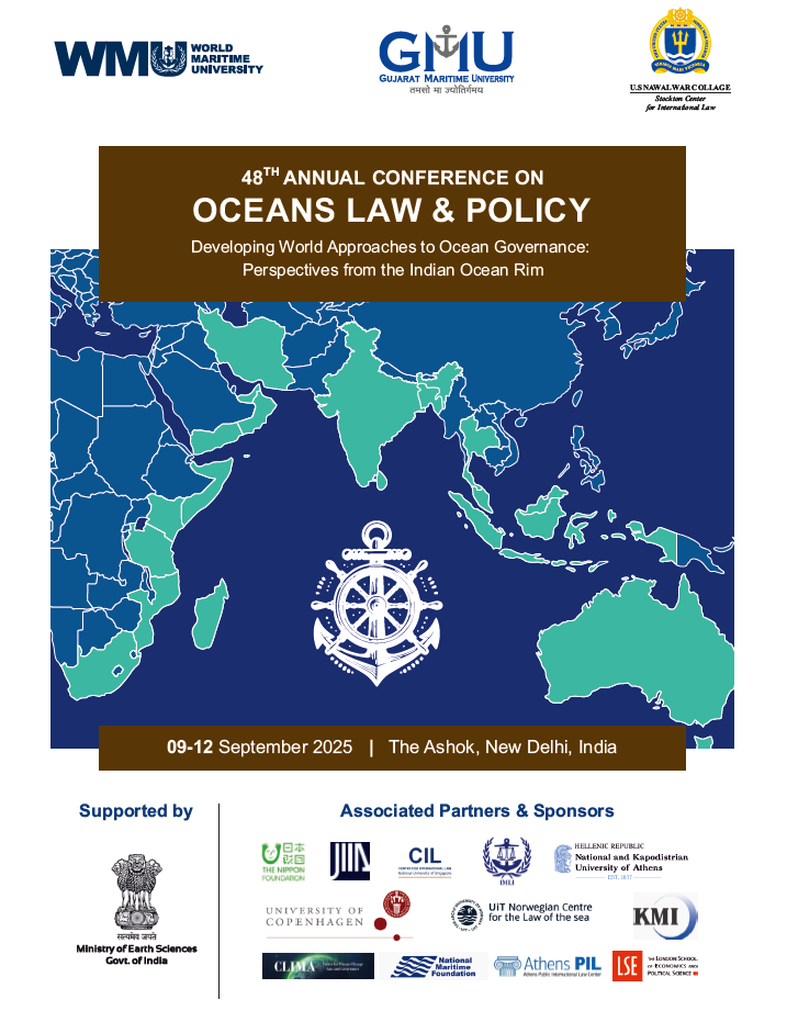 2025年9月9日~12日に第48回海洋法国際会議「Developing World Approaches to Ocean Governance: Perspectives from the Indian Ocean Rim」がインド・ニューデリーで開催され、日本国際問題研究所は共催団体として参加致しました。主催はインドのグジャラート海洋大学(Gujarat Maritime University)で、他にも米国海軍大学ストックトン国際法センター(U.S. Naval War College Stockton Center for International Law)、世界海事大学笹川世界海洋研究所(WMU-Sasakawa Global Ocean Institute)、国際海事機関国際海事法研究所(IMO International Maritime Law Institute)などの機関が共催しております。第48回会合となる本会では、インド洋沿岸地域を主な対象として、国際貿易および海上輸送、レジーム間相互作用と非国家主体の役割、生物多様性保全、無人船舶、海底鉱物資源開発、AI(人工知能)と新興技術、漁業と食糧安全保障、境界画定と紛争解決など広範囲なテーマが設定され多角的な観点から議論が行われました。