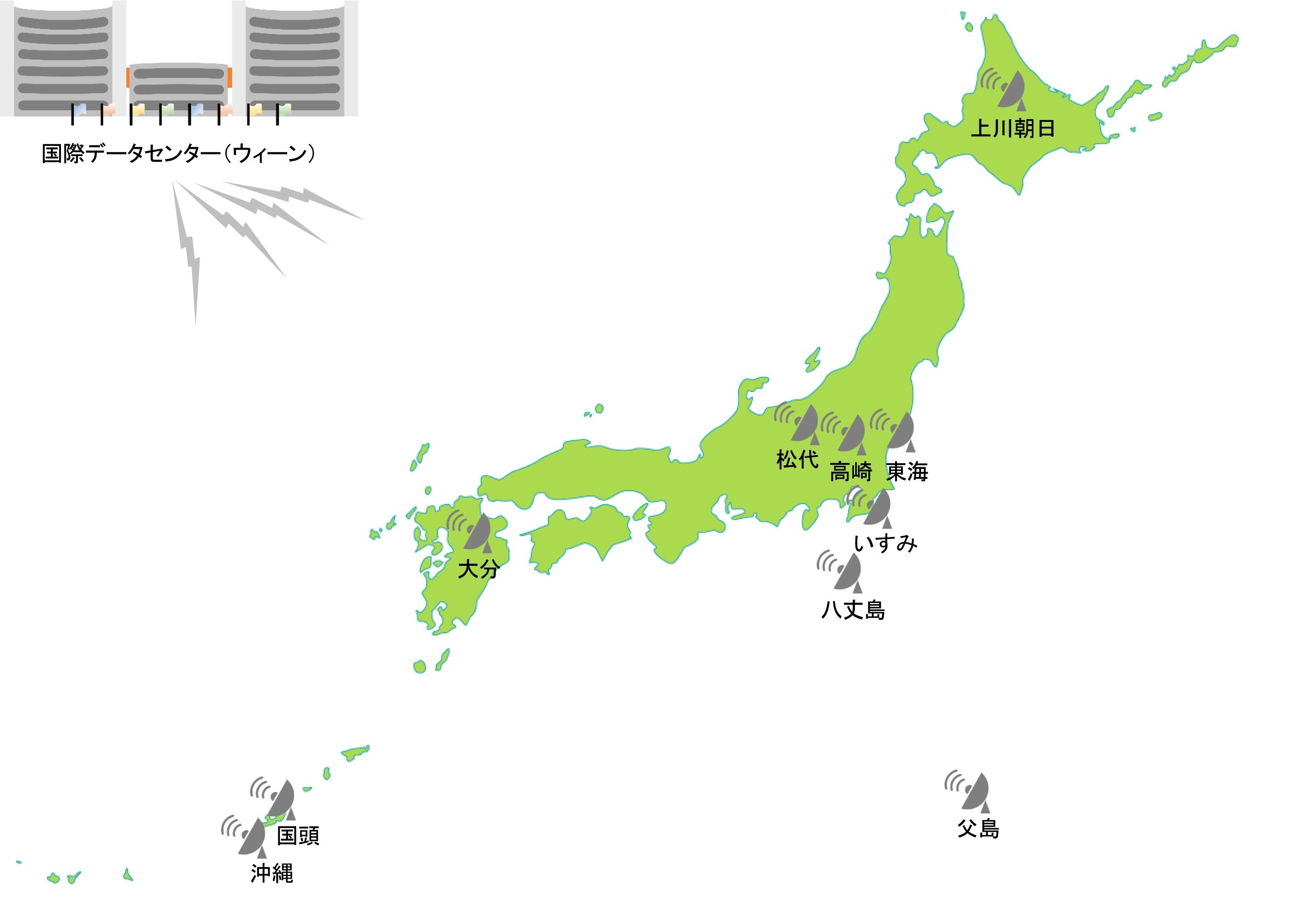 | 補助観測所:大分(AS51)、国頭(AS52)、八丈島(AS53)、上川朝日(AS54)、父島(AS55) IDCの要請に応じ、地震データを送信する。 |