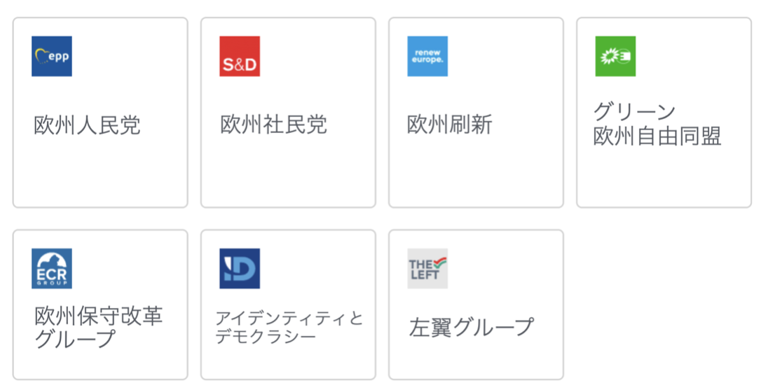 以上に加えて、環境保護政党のヨーロッパ組織・欧州緑の党(European Green)と、地方政府の自律性を訴える欧州自由連盟(EFA)が、合同でグリーン/欧州自由連盟(Green/EFA)を設置している。また急進左派および極左が欧州左翼党(European Left)を結成し、欧州議会に左派グループ(The Left)を結成している8。上述のECRとIDにとって、グリーンと左派グループにS&Dを加えた勢力は左派グローバリストとして一括される政敵であるが、逆にECRとIDは左派・グリーンそしてS&Dにとっては、人権とデモクラシーの敵であり、コルドンサニテール(防疫線)が必要な排除されるべき敵となる9。