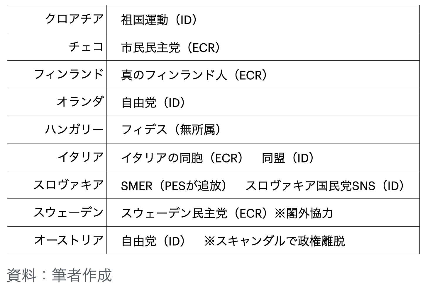 第9表 IDとECRなどEU懐疑派が政権に参加しているEU加盟国