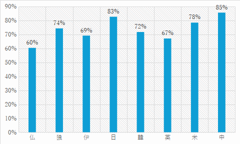 図1 自動車の総輸出における国内付加価値の割合(%)