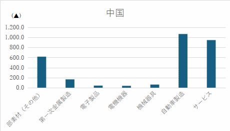 図3 中国経済への産業別の波及効果(付加価値ベース:百万ドル)