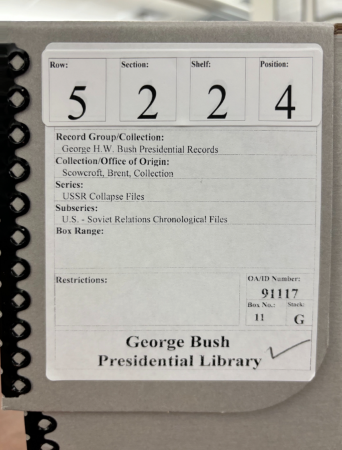 筆者にとってブッシュ大統領図書館への訪問は今回が初めてだったが、米国での調査は2017年に国立公文書館(NARAⅡ)に訪問して以来だった。この間、コロナの影響もあり、各大統領図書館を含む多くの資料館で文書のデジタル化が進んでいる。日本にいながらにして、これまでよりもコストをかけることなく、多くの資料を入手できるようになったことは歓迎すべきことである。しかし、なかには一つひとつの文書が全体のなかでどういう位置づけにあるのかが不明な場合がある。またテーマ毎にどれくらいの文書が公開されていないのか、どういった内容(タイトル)の文書が機密指定のままなのかがわからないこともある。今回の滞在でも、筆者のテーマに関連するスコウクロフト国家安全保障担当大統領補佐官、NSC欧州ソ連問題担当のブラックウィル上級部長やローウェンクロン部長などの文書の開示状況は比較的良かったが、欧州における米国の核兵器に関する文書の多くは散発的にしか開示されていなかった。それでもこうした状況を把握することもまた、現地の資料館に直接足を運ぶ意味として大きいだろう。今後、デジタル化された文書が増え続けることが予想されるが、すべてがデジタル化されるわけではないので、現地に滞在してそこで文書を閲覧・収集する意味は薄れないだろう。コロナ禍を経て久しぶりの米文書館訪問を通じて改めて現地調査の醍醐味を味わった次第である。