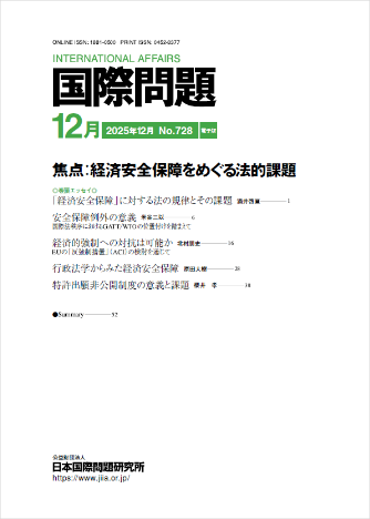 『国際問題』は1960年にわが国唯一の国際問題専門誌として創刊されました。激動する現代の国際問題に関する主要テーマを、ジャーナリスティックな関心とアカデミックな分析を融合させ、その両面から論述する専門誌として、各界から高い評価を得ています。
