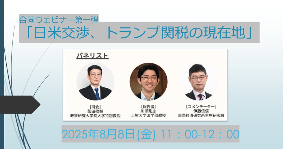 【主査】飯田敬輔(政策研究大学院大学特別教授)【委員】猪俣哲史(JETROアジア経済研究所 上席主任調査研究員)川瀬剛志(上智大学法学部地球環境法学科教授)杉之原真子(フェリス女学院大学国際交流学部教授)土屋貴裕(京都外国語大学共通教育機構教授)中谷和弘(東海大学法学部教授)【委員兼幹事】髙山嘉顕(日本国際問題研究所研究員)柳田健介(日本国際問題研究所研究員)