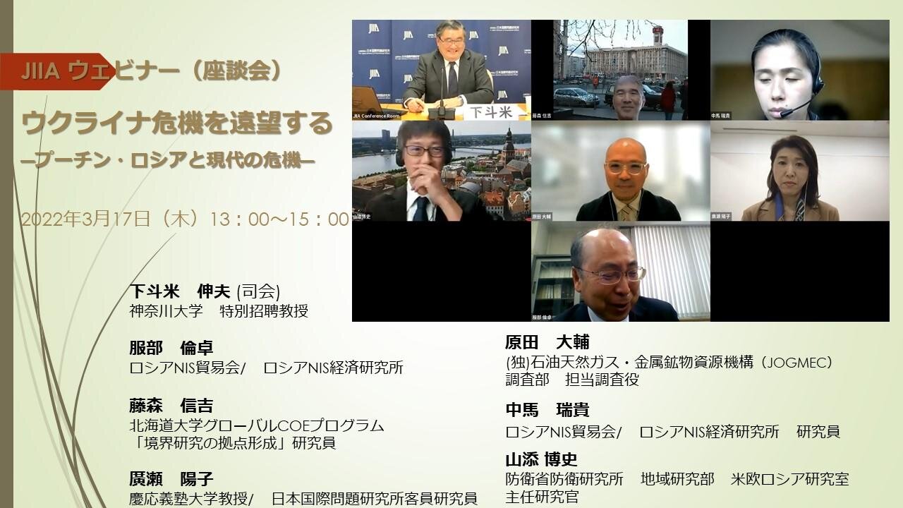 JIIA公開ウェビナー 「ウクライナ危機を遠望する ―プーチン・ロシアと現代の危機―」